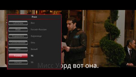 При воспроизведении видеофайлов плеер отображает все наиболее часто встречающиеся форматы субтитров, при этом существует как возможность выбора нужной дорожки, так и настройка кодировки, цвета, размера и отступа появляющегося на экране текста. Титры в графическом представлении (формат PGS), обычно находящиеся в видеофайлах, снятых современными AVCHD-камкордерами, плеер не распознаёт.