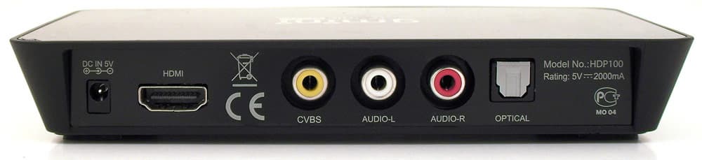 Задняя панель столь невелика, что вместила лишь самый необходимый минимум: вход для адаптера питания, HDMI-выход, композитный аудио/видеовыход да цифровой оптический выход звука.