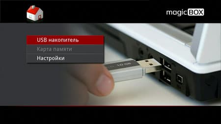 Слева от лицевой панели расположены порт USB 2.0 для подключения флешки или внешнего жёсткого диска и слот для карты памяти стандартов MMC, SD или SDHC.
