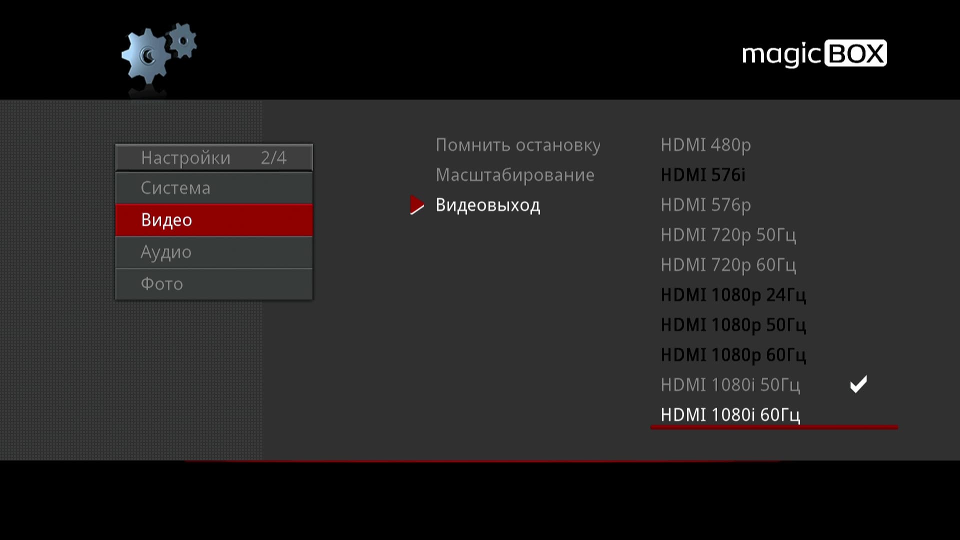 И здесь минимализм во всей своей красе. Всего лишь четыре пункта: Система, Видео, Аудио и Фото. Каждый из пунктов содержит тот самый минимум, без которого работа любого самого простого плеера не представляется возможной.