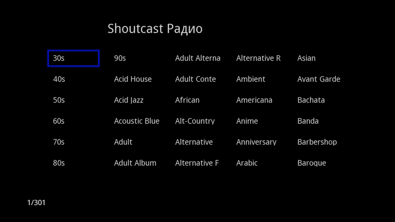Список радиостанций состоит из 301 жанровой записи — думается, столь огромный выбор следовало бы как-то упростить и упорядочить, создав древовидную жанрово-стилевую структуру.