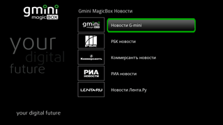 Служба Новости включает в себя восемь пунктов, от РБК Новости до прогноза погоды и новостей CNN.