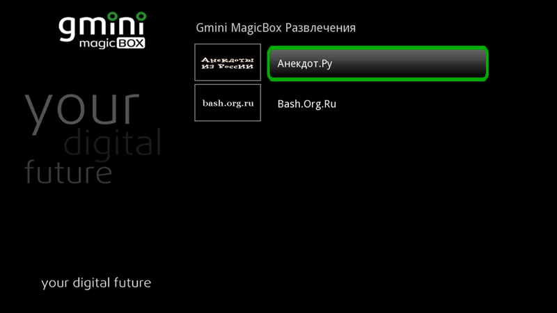 Развлечения состоят всего лишь из двух пунктов: Анекдот.ru и Bash.Org.Ru. Всего из двух, но их вполне достаточно, чтобы, не вставая с дивана, быть в курсе, над чем сегодня в нашей стране принято смеяться.
