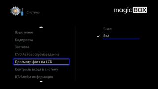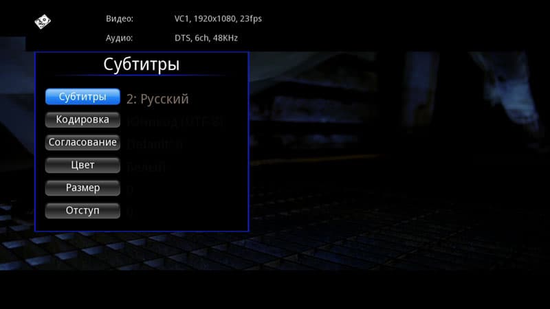 Что касается настроек плеера — вход в них осуществляется либо из главного меню, либо нажатием отдельной кнопки на пульте ДУ.