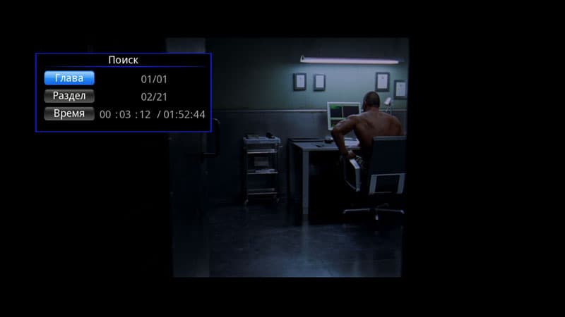 Используя соответствующие кнопки на пульте ДУ, пользователь во время просмотра может выбирать и изменять такие параметры, как звуковая дорожка, субтитры, а также просмотреть информацию о проигрываемом файле.