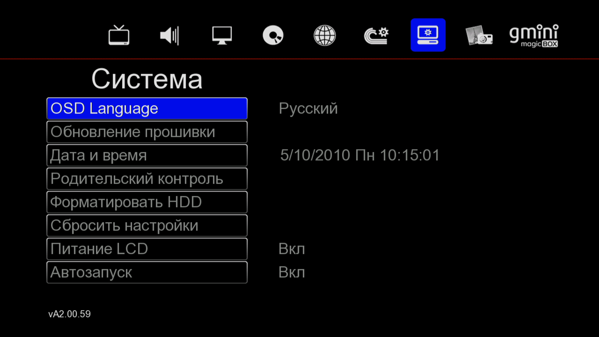 Настройки плеера включают в себя все возможные пункты для полного контроля над аппаратом: