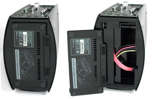 В основании плеера расположено гнездо для установки жёсткого диска (поддерживаются 3,5" SATA-диски ёмкостью до 2 ТБ), помещённый внутрь диск фиксируется выдвижной пластмассовой "лыжей". Невысокие резиновые ножки, расположенные по краям сдвижной крышки, надёжно удерживают аппарат от скольжения на ровных поверхностях.