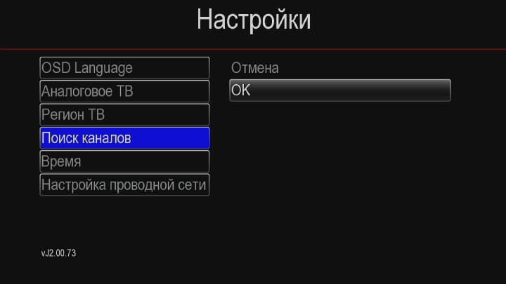 | Поиск каналов | Запуск автоматического поиска каналов |