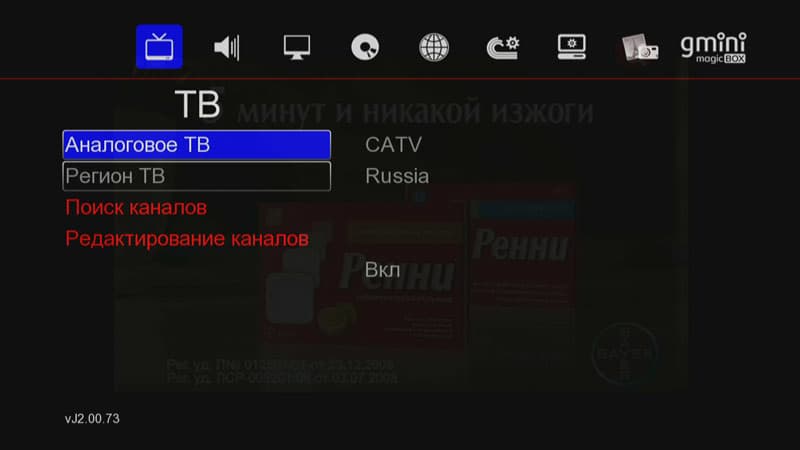 Нечего и говорить — настройки данного рекордера один-в-один повторяют настройки рассмотренного ранее MagicBox HDR1000D. Кроме, разумеется, пунктов, отвечающих за параметры приёма аналогового телевидения.