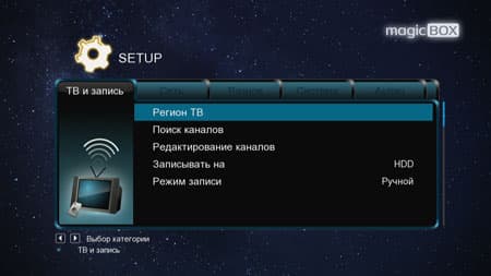 В настройках цифрового телевидения позволяется выбрать регион, найти каналы как в автоматическом режиме, так и вручную; присвоить каждому каналу своё имя, изменить их последовательность. Также здесь можно определиться — куда и как вести запись цифрового ТВ. К сожалению, в местности обитания автора цифрового ТВ всё ещё не наблюдается, и проверить работу тюнера нет никакой возможности.