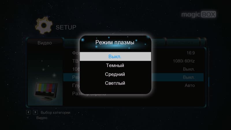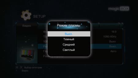 В настройках видеосигнала нет ничего необычного, за исключением одного пункта: Режим плазмы. Как видим, данная настройка призвана сделать более комфортным просмотр на плазменном ТВ.