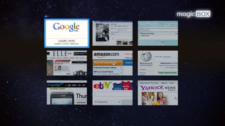Выше мы упоминали о сетевых возможностях плеера, но теперь рассмотрим их основательно. Главная по своей необычности вкуснятина скрывается в пункте Веб-браузер, что в главном меню. Активация этой иконки приводит к появлению окна с девятью миниатюрными скриншотами главных страниц сайтов.
