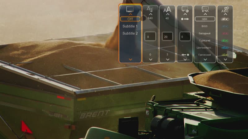 При воспроизведении видео пользователь имеет возможность нажатиями соответствующих кнопок на ИК-пульте выбрать нужную звуковую дорожку или субтитры, настроив при этом их размер, положение, кодировку и стиль оформления. Полупрозрачные меню, отвечающие за эти действия, всплывают в правом верхнем углу экрана.