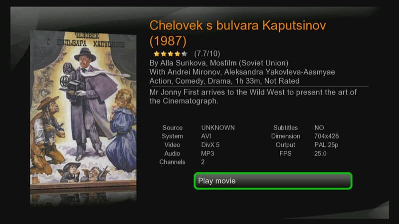 Теперь, с помощью данного сервиса, вся медиабиблиотека пользователя станет отображаться в удобоваримом виде, так, словно попадаешь в тщательно упорядоченный киноархив. На экран выводится информация о фильмах, да такая информация, которую собирать вручную довольно трудно и долго. Посмотрите: тут и подробные характеристики файла, постер к фильму, краткая аннотация и даже рейтинг IMDB!