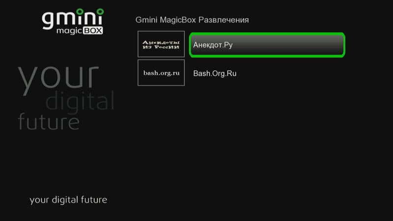Каждая из них, разумеется, разбита на отдельные ресурсы. Так, пункт Новости включает в себя такие новостные ленты, как новости G-mini (владельцам одноименных плееров рекомендуется время от времени сюда заглядывать), РБК Новости, Коммерсантъ и другие. В список Развлечений входят свежие афоризмы от сайтов Анекдот.Ру и bash.Org.Ru. Погодный портал позволяет наблюдать за работой небесной канцелярии в любом уголке мира, а с помощью последнего пункта Добавление своих RSS пользователь может внести в список информационных лент плеера свой избранный ресурс.
