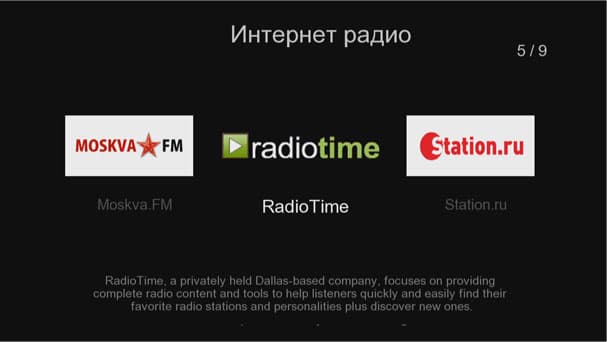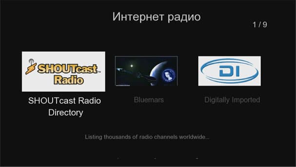 Сервис Интернет радио включает в себя множество каналов, разбитых по категориям и тематике, объединённых также в группы. На любой вкус, на любой цвет. Наименование каждой радиостанции сопровождается её логотипом.
