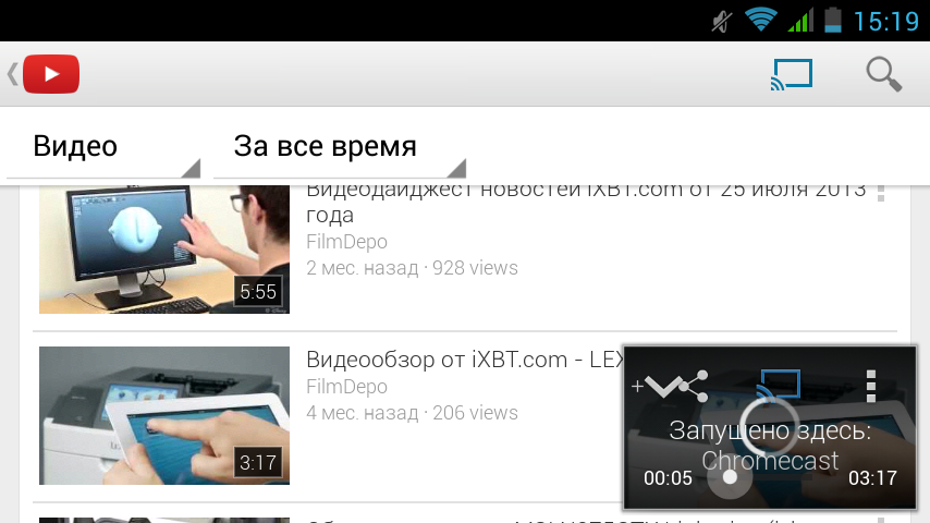Во время просмотра одного ролика вы можете искать другие и добавлять их в очередь воспроизведения. Трансляция видео не зависит от состояния программы на мобильном устройстве, от нее не требуется быть постоянно активной.