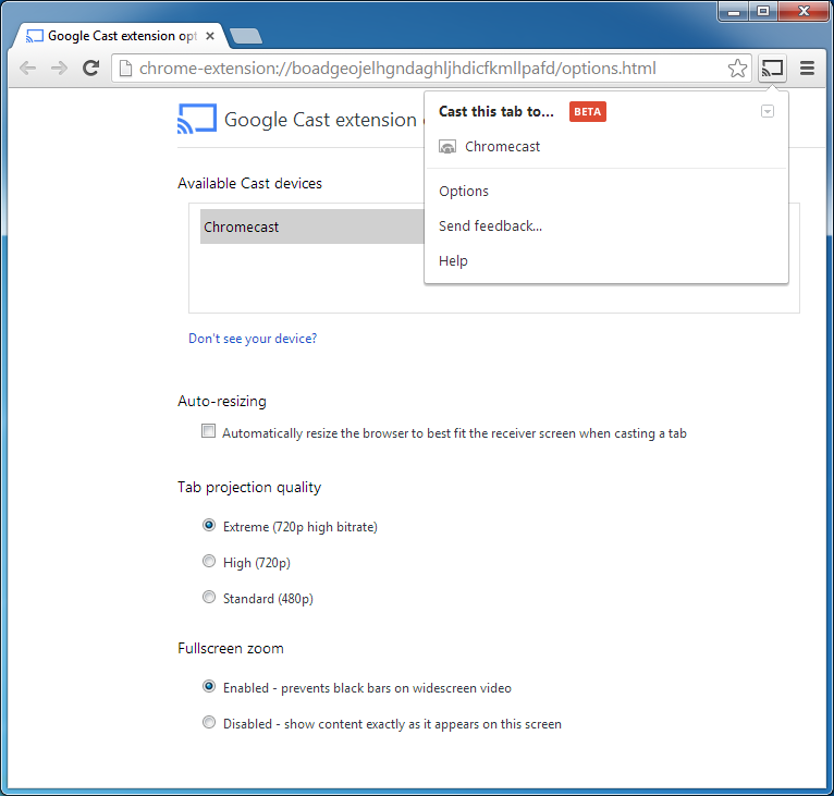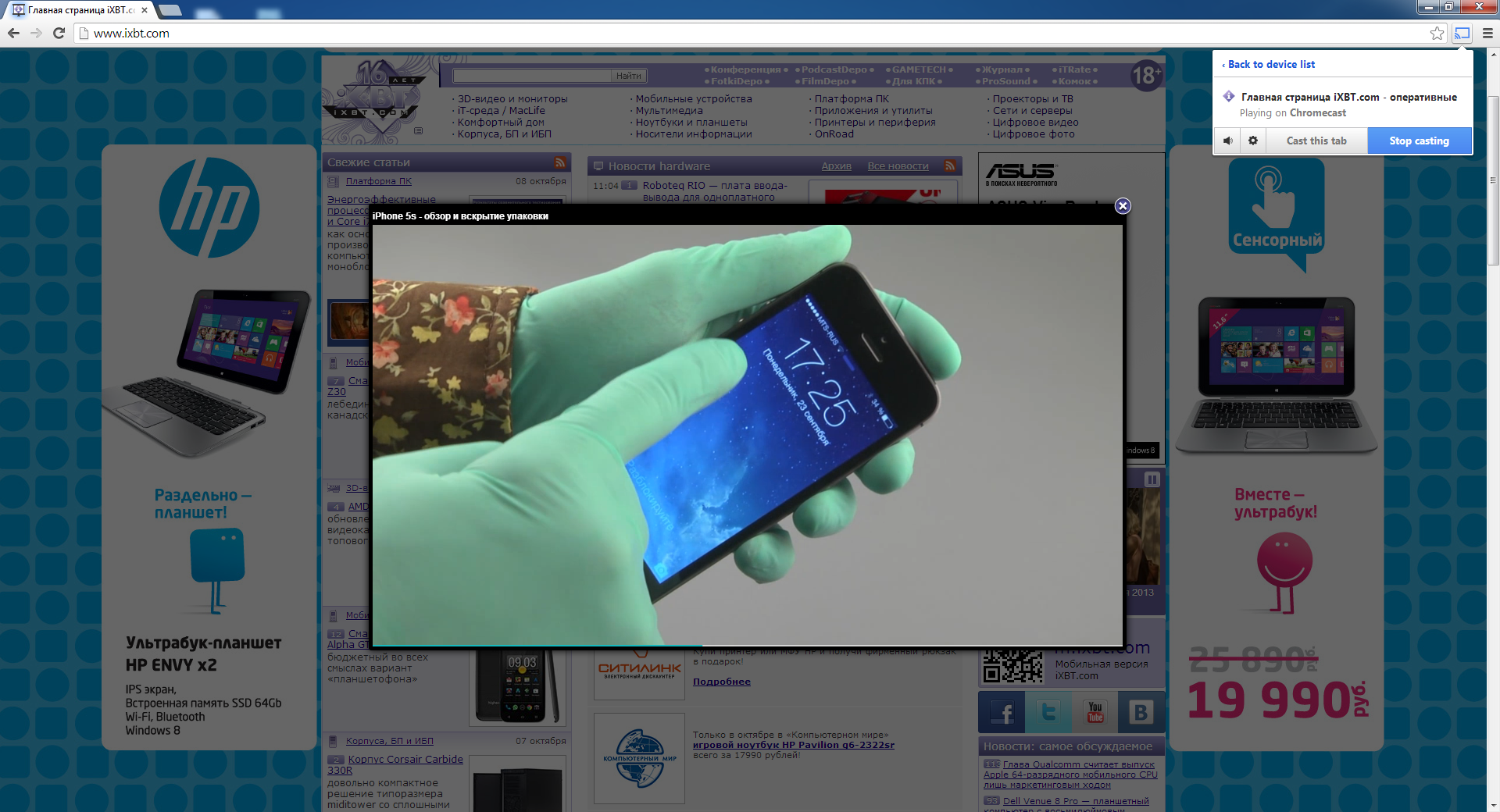 Кроме описанных выше вариантов онлайн-трансляций, есть еще одна возможность увидеть вашу информацию на большом экране. Речь идет о плагине Google Cast для браузера Google Chrome, который позволяет вывести на телевизор просматриваемую Интернет-страницу. Эта функция работает в версиях браузера для Windows и Mac OS.