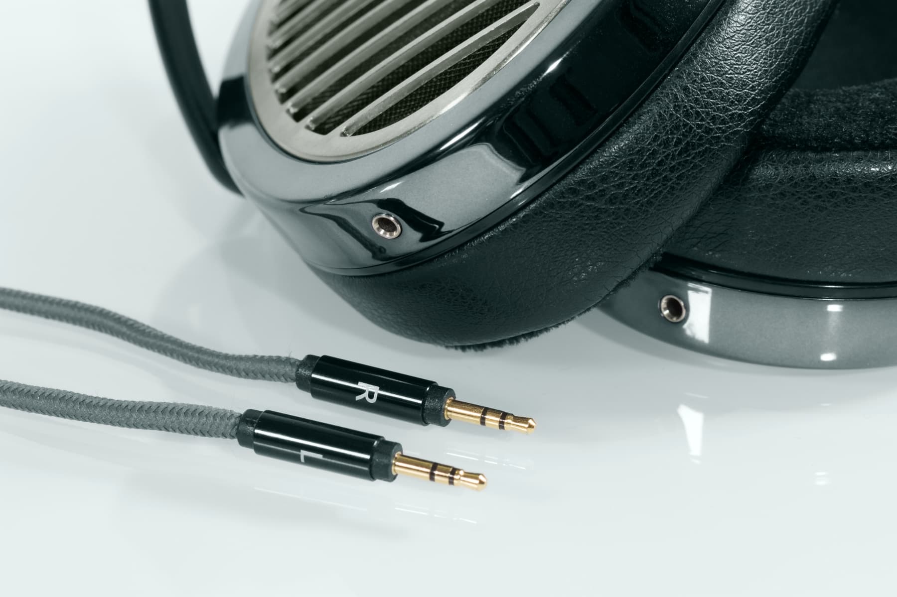 В комплекте предусмотрительно идут два отдельных кабеля, с разъемом миниджек. Стоит похвалить производителя за стандартные разъемы и за отдельное подключение каждой чашки наушников. Таким образом, достаточно легко сменить кабель и найти балансный кабель c 4-контактным XLR-разъемом. Производитель предлагает свои варианты: например, есть интересный кабель Crystalline balanced cable (4 pin XLR plug) for HiFiMan HE Series. Он официально подходит к моделям HE-400S, upgraded HE-400i/HE-560, HE-1000 и Edition X. Также можно без труда найти и кабели сторонних производителей.