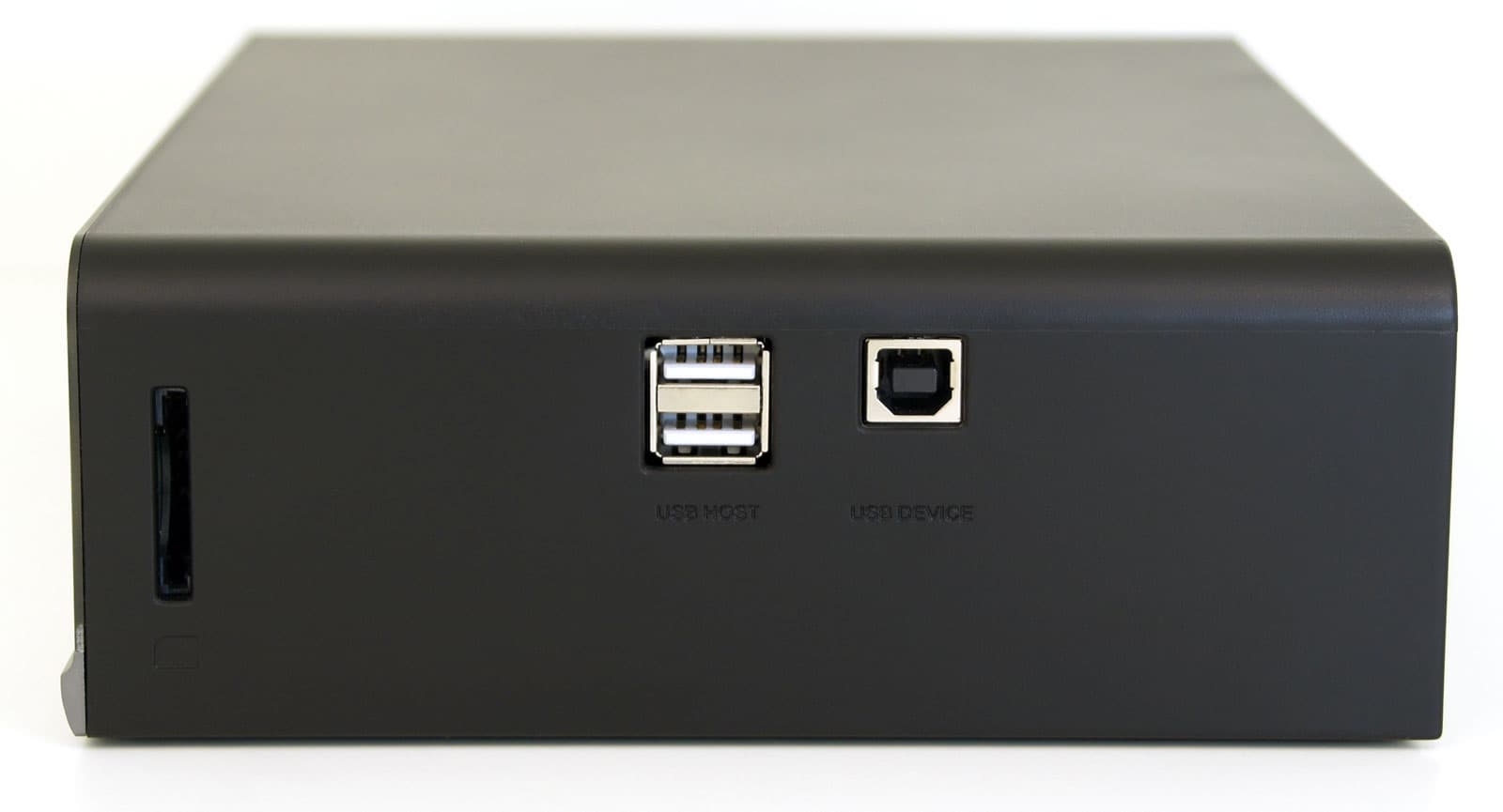 В правой боковой стенке плеера имеются слот для карт памяти (SD), два USB-порта для подключения внешних носителей (флэшки, жёсткие диски, оптические дисководы), и порт USB Device для подключения плеера к ПК.