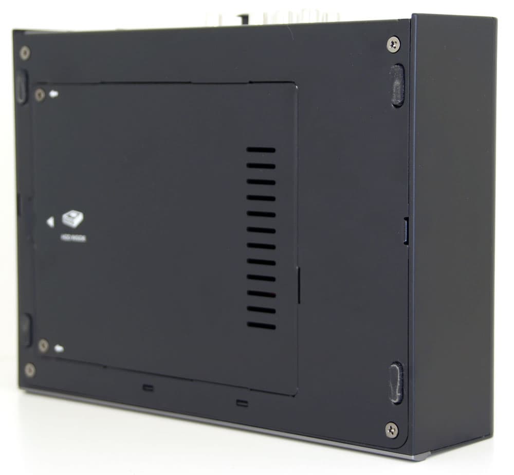 В дне плеера имеется откидная крышка, фиксируемая двумя болтами. К этой крышке внутри аппарата крепится жёсткий диск. На крышке видны вентиляционные отверстия, предназначенные для забора воздуха, охлаждающего этот самый жёсткий диск.
