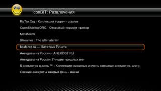 — Дааа, уж! — глубокомысленно изрёк бы Киса Воробьянинов, увидев такое богатство. Но и автор недалеко ушёл от Ипполита Матвеевича: «Дааа… уж». Ставим Iconbit-у твёрдую жирную пятёрку с плюсом за такое информационное наполнение плеера! Если данный аппарат использовать каждодневно, тут и о фильмах-то, пожалуй, забудешь.
