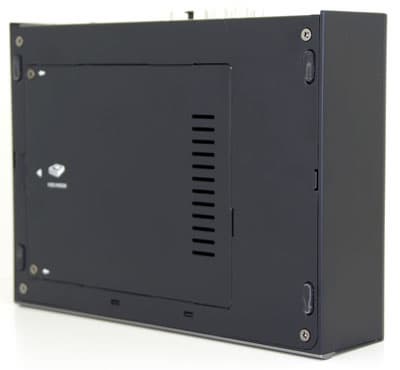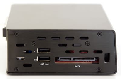 Левая сторона корпуса — та же сплошная вентиляция, за исключением двух портов USB 2.0? служащих для подключения внешних USB-носителей (флэшки, жёсткие диски). Здесь же имеется слот для подключения ещё одного жёсткого диска по шине SATA.