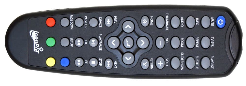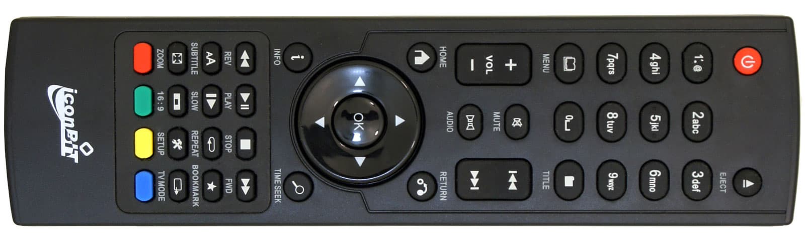 Инфракрасный пульт управления, размерами больше самого плеера, имеет логично (и привычно) расположенные кнопки. Ход кнопок неглубокий, это радует.