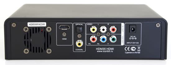 На задней панели традиционно расположены основные интерфейсы: HDMI версии 1.2, оптический и коаксиальный цифровые аудиовыходы, композитный аудио- видеовыход и компонентный выход. По тому, что LAN-порт тут отсутствует, несложно догадаться, что данный плеер не имеет никаких сетевых возможностей. Вентилятор, работающий на выдув, не доставляет беспокойства своим вращением даже в тишине.