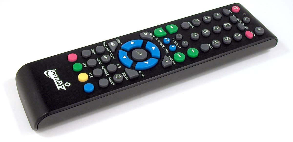 Пульт управления нельзя назвать компактным, такой не потеряешь. Резиновые кнопки с крупными символами имеют довольно большой ход, о каждом нажатии кнопок сигнализирует синий светодиод, расположенный в верхней части пульта.