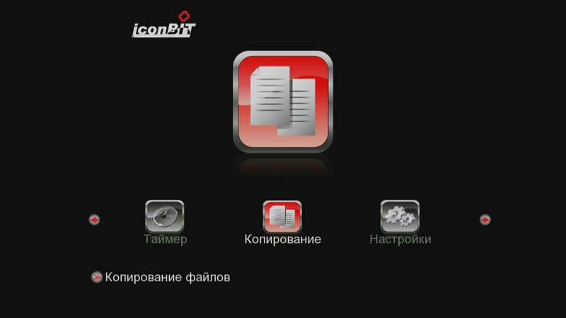 Следующая иконка — Обзор. Это стандартный для плееров Iconbit браузер, благодаря которому пользователь имеет возможность найти любую медиаинформацию со всех доступных локальных источников: карта памяти, жёсткий диск, DVD-диск, локальная сеть, UPnP и плей-листы, заранее созданные с помощью плеера.