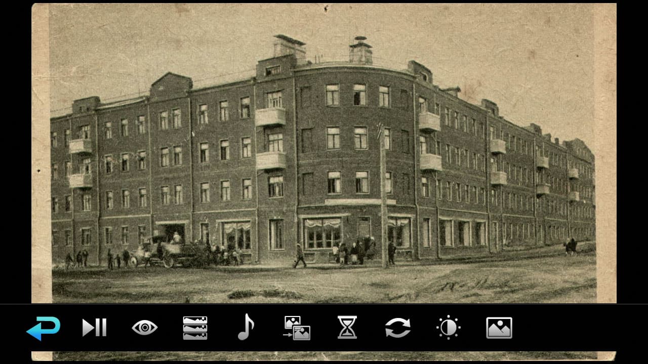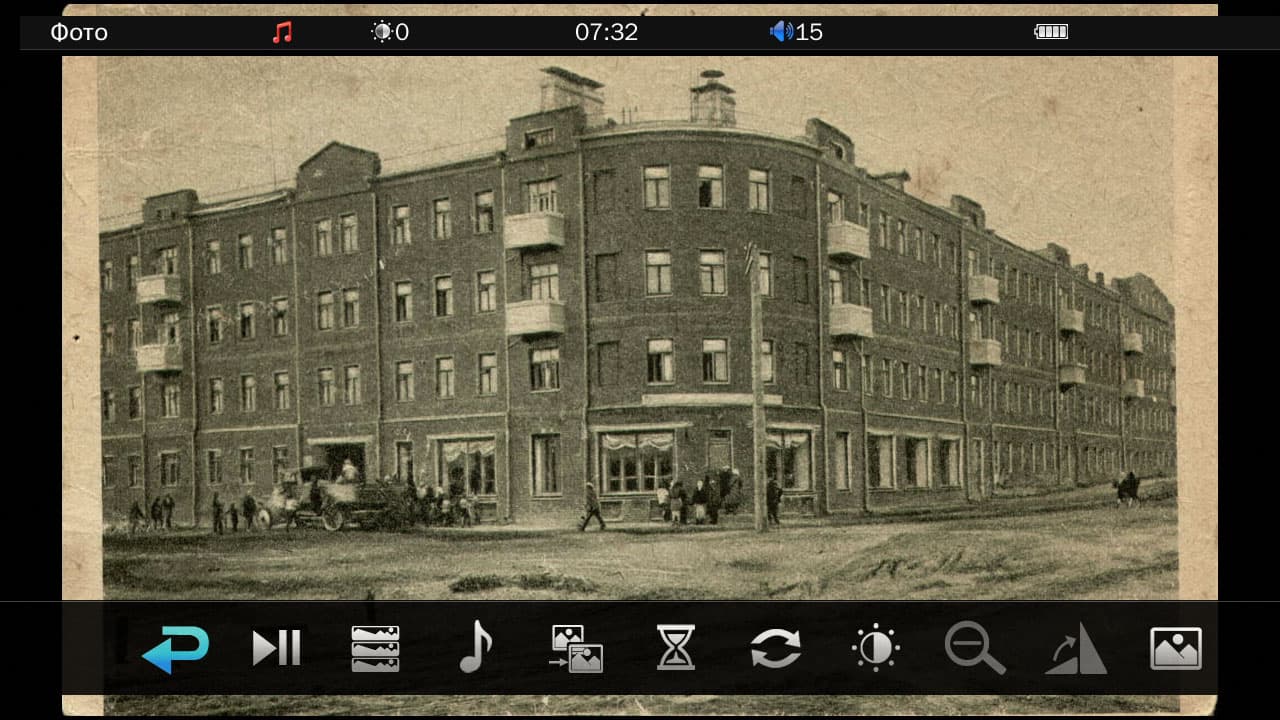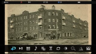 | Проигрывание музыки. Доступны смена режима повтора, восемь предустановок эквалайзера (пользовательского режима нет), прочие настройки. Плеер проигрывает музыку лишь в пределах одной папки, переход в следующую папку не производится. Однако встроенная библиотека аудиофайлов, создаваемая автоматически посредством чтения плеером ID-тегов, позволяет отсортировать музыку по альбому, жанру, исполнителю, году и рейтингу (рейтинг задаётся вручную для каждого файла в отдельности). | Просмотр фото. При просмотре фото-слайд-шоу доступно увеличение/уменьшение, поворот изображений, просмотр миниатюр, выбор музыкального сопровождения, выбор типа переходов между слайдами, настройка длительности показа одного слайда: 1, 3, 5 и 10 секунд. |