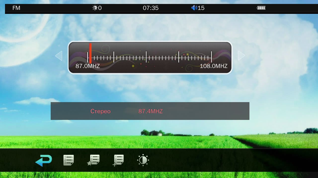 | Чтение книг. Имеется поддержка форматов *.TXT, *.PDF, *.FB2, *.EPUB (с отображением иллюстраций, разумеется, если таковые позволяет формат). | FM-радио |