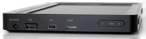 Наконец, на правой грани устройства расположены вход для блока питания, порт USB-Host для подключения внешних USB-носителей информации (жёсткий диск, к примеру), порт mini-USB для подключения плеера к ПК, выход HDMI 1.3 и знакомая по предыдущей модели кнопка-качалка для регулировки уровня громкости.