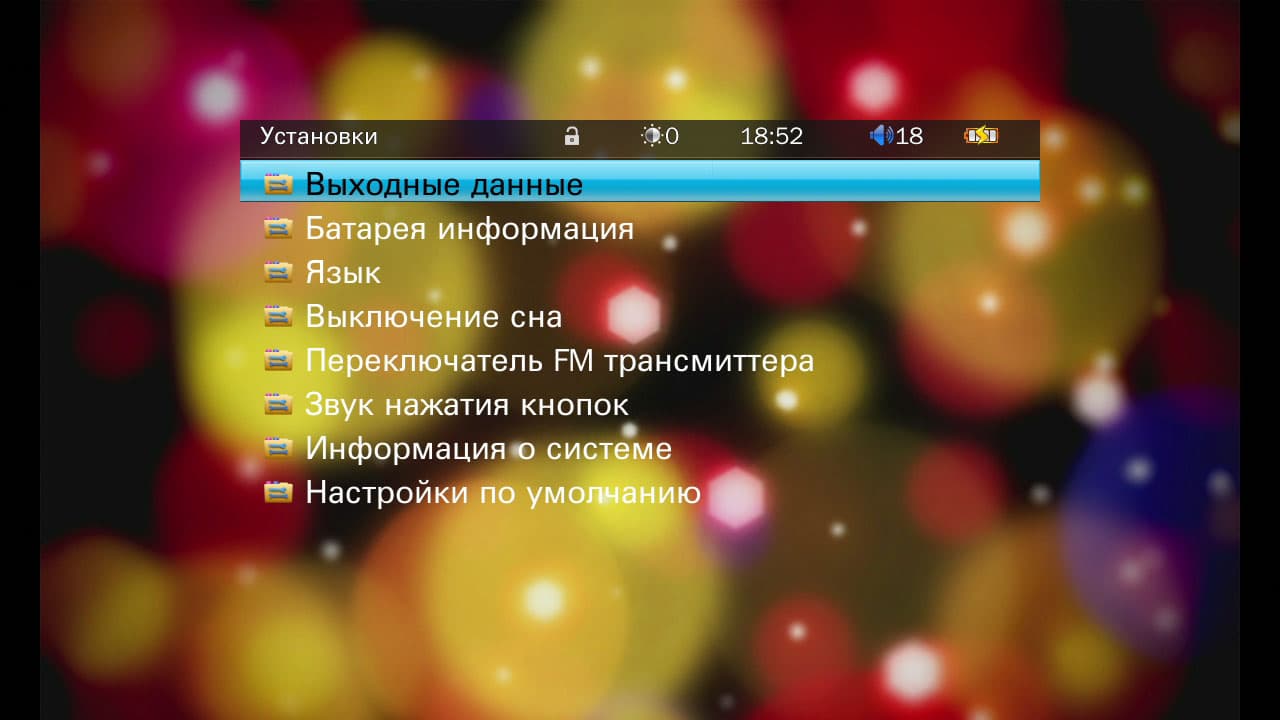 Настройки плеера нельзя назвать разнообразными, однако для изменения ключевых параметров устройства тут вполне достаточно пунктов. Дело в том, что все дополнительные параметры плеера вызываются во время проигрывания/прослушивания/просмотра контента.