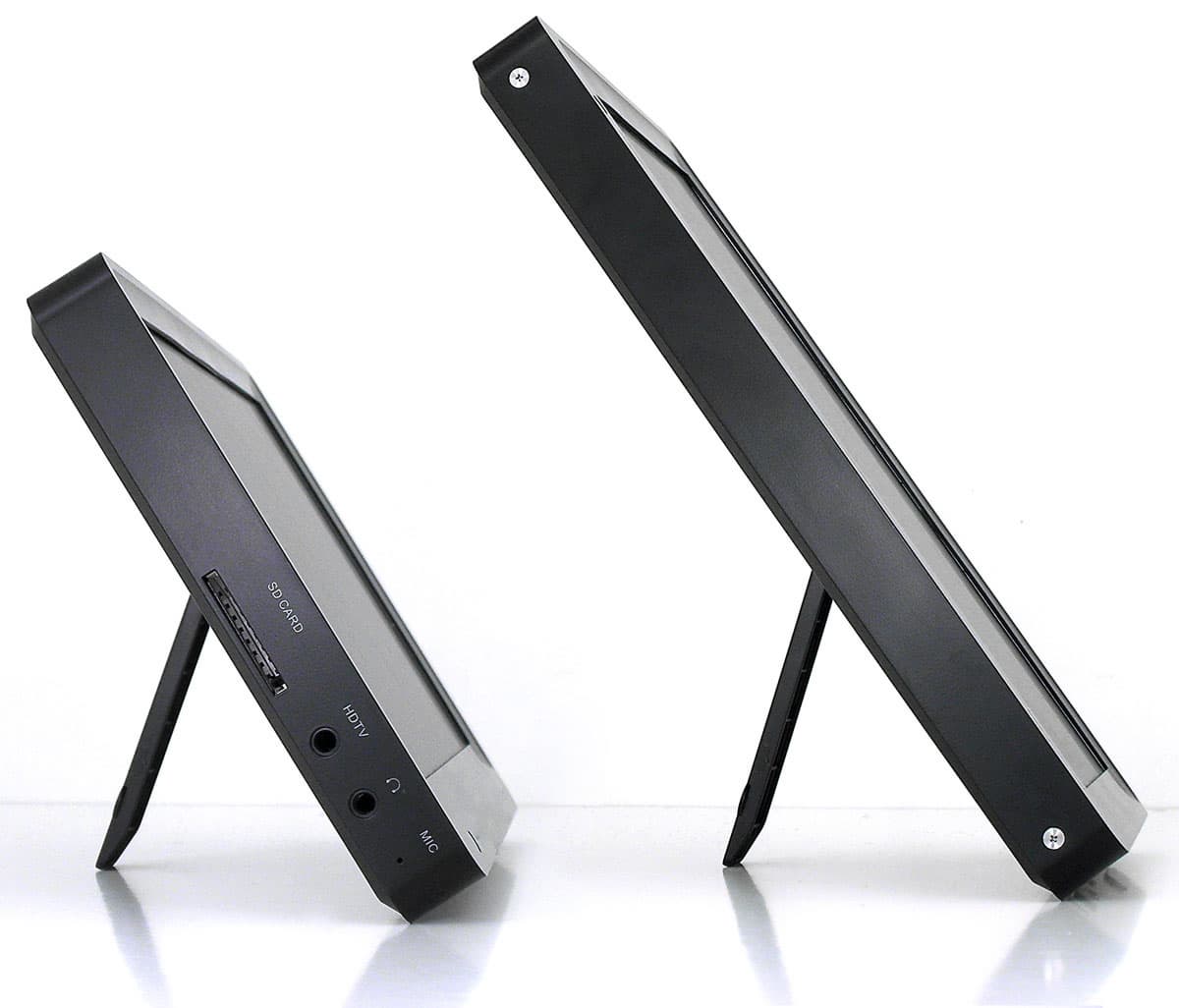 На задней стенке размещены стереодинамики. Надо заметить, они довольно тихие: слушать музыку или звуковое сопровождение фильма можно лишь на полной громкости в почти идеальной тишине. Ну, в крайнем случае, при слабом фоновом шуме — в купе поезда, например.