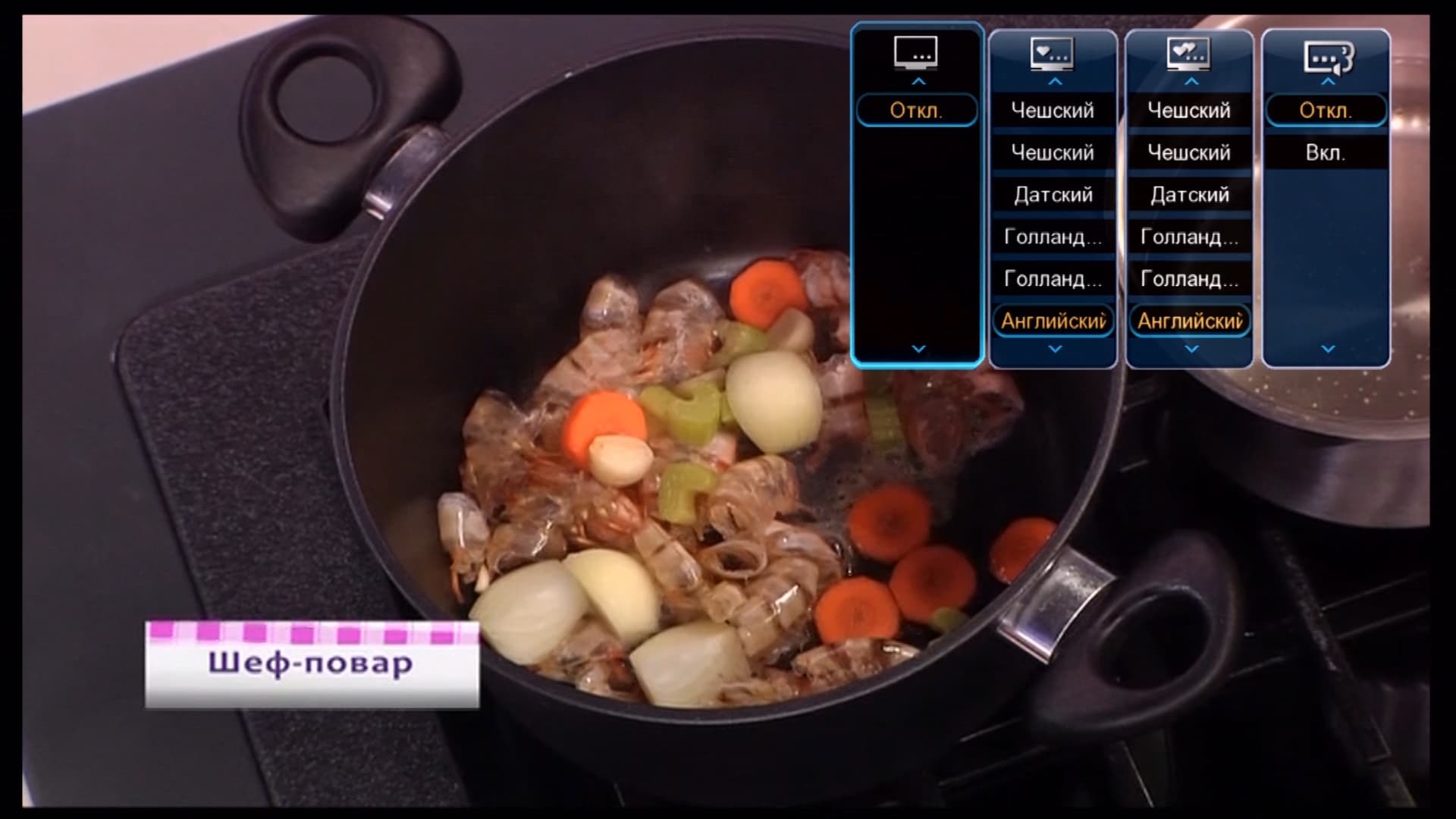 Во время просмотра цифрового ТВ пользователь имеет возможность увидеть информацию о канале, оставшемся свободном месте на диске, включить отображение титров (этих титров пока в нашей трансляции, по всей видимости, нет).