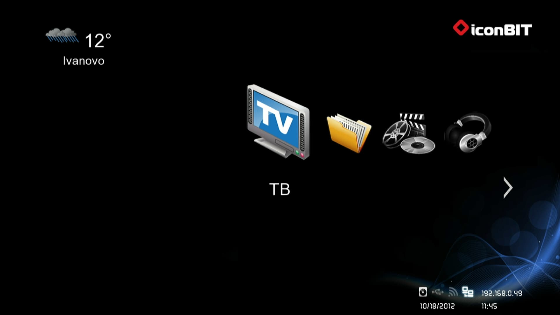 Итак, вместе с ТВ-тюнером в прошивке аппарата появился ещё один пункт главного меню — ТВ. По умолчанию после включения плеера данный пункт активирован.