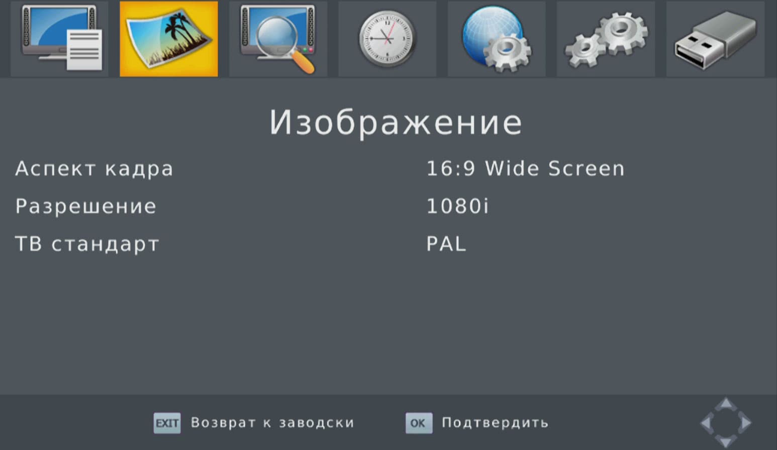 Что касается подводных камней — таковой был найден. Дело в том, что приставка не поддерживает автоматическую смену частоты и разрешения видеосигнала. Так, если аппарат настроен на вывод 1080 60p и пользователь подключит его к CRT-телевизору, забыв перед этим изменить установленный стандарт на какой-то другой, более щадящий, то изображения на экране он не увидит. Придётся вновь подключать приставку к прежнему устройству отображения, которое поддерживает установленный режим, и поменять его на 576i. Либо (это подсказка) изменить разрешение вслепую с помощью пульта ДУ, нажав последовательно следующие кнопки: Menu — Стрелка вправо — Стрелка вниз — Стрелка вниз — Стрелка вправо или влево до появления изображения.