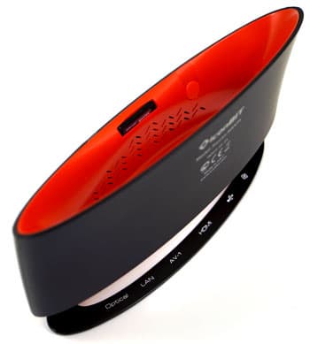 Корпус устройства изготовлен из пластика двух цветов, красного (внутренняя часть) и черного (наружная «обшивка»). Форму корпуса не опишешь без отождествления с чем-то необычным, не встречающимся в жизни. Она под определенным углом может напоминать обрезок толстостенной трубы, нарисованный ребенком без соблюдения закона перспективы.