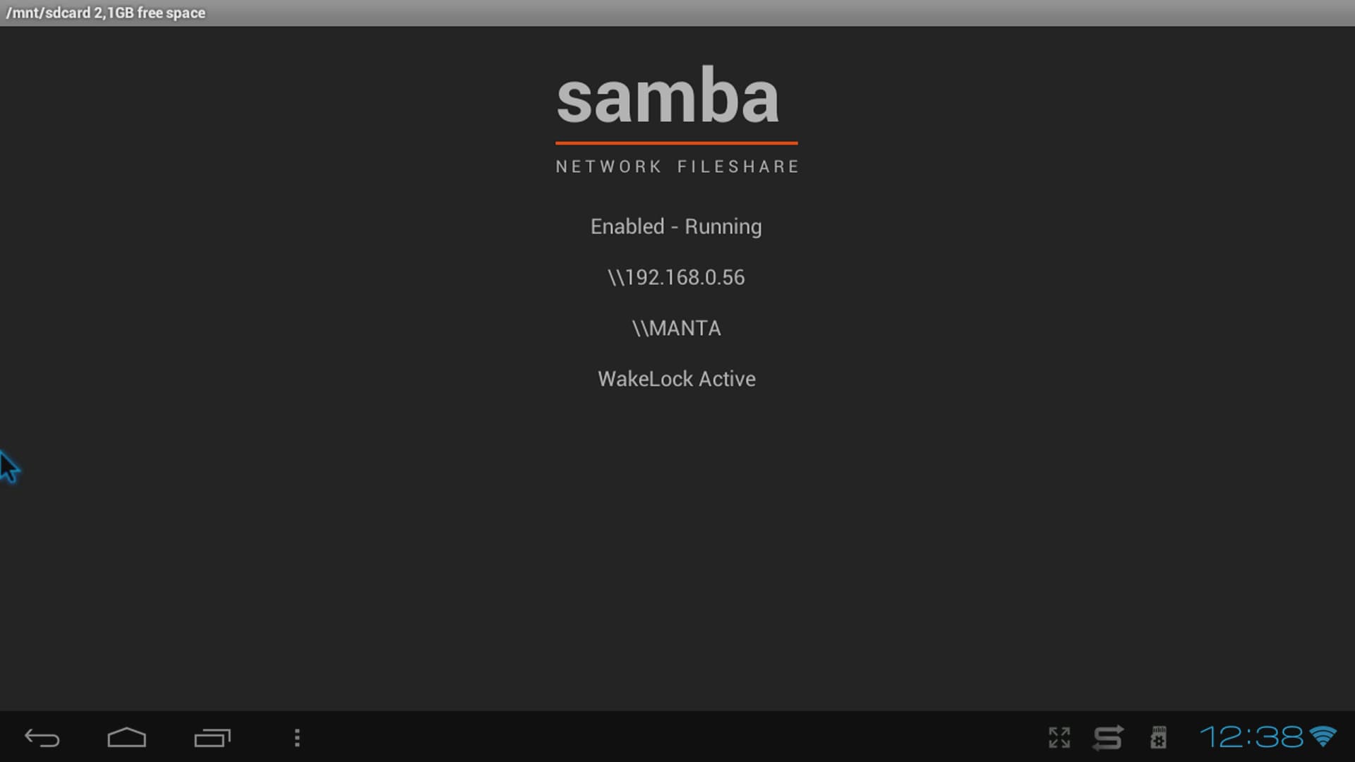 После несложных манипуляций с файлом smb.conf, находящимся в папке /data/data/com.funkyfresh.samba/files/, удалось даже «расшарить» жесткий диск, подключенный к Manta по USB. Однако не следует надеяться, что этот диск в явном виде тут же отобразится в Сетевом окружении Windows. Путь к диску следует искать по адресу \NETBIOS Namesdcardusbhost#.