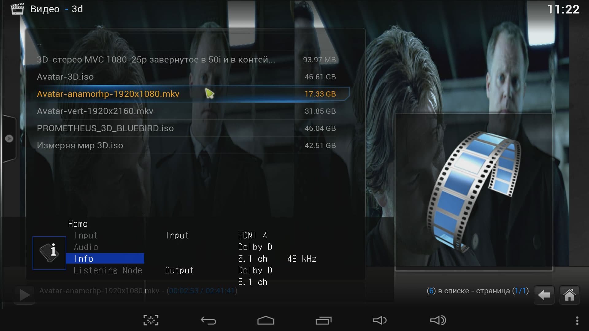 Наконец, о звуке. Повторим, что многоканальный и DTS-звук система Android вывести не в состоянии — такой аудиопоток всегда конвертируется в стерео-PCM. Исключением является вариант с использованием специальной оболочки — XBMC.