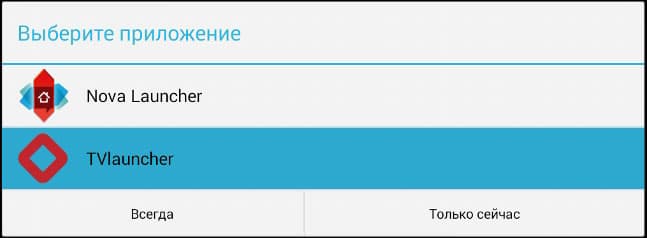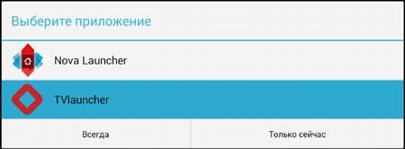 При первом включении устройство предлагает сделать выбор лаунчера, который следует запускать. Как видим, здесь предоставляется выбор из двух вариантов: Nova и TV.