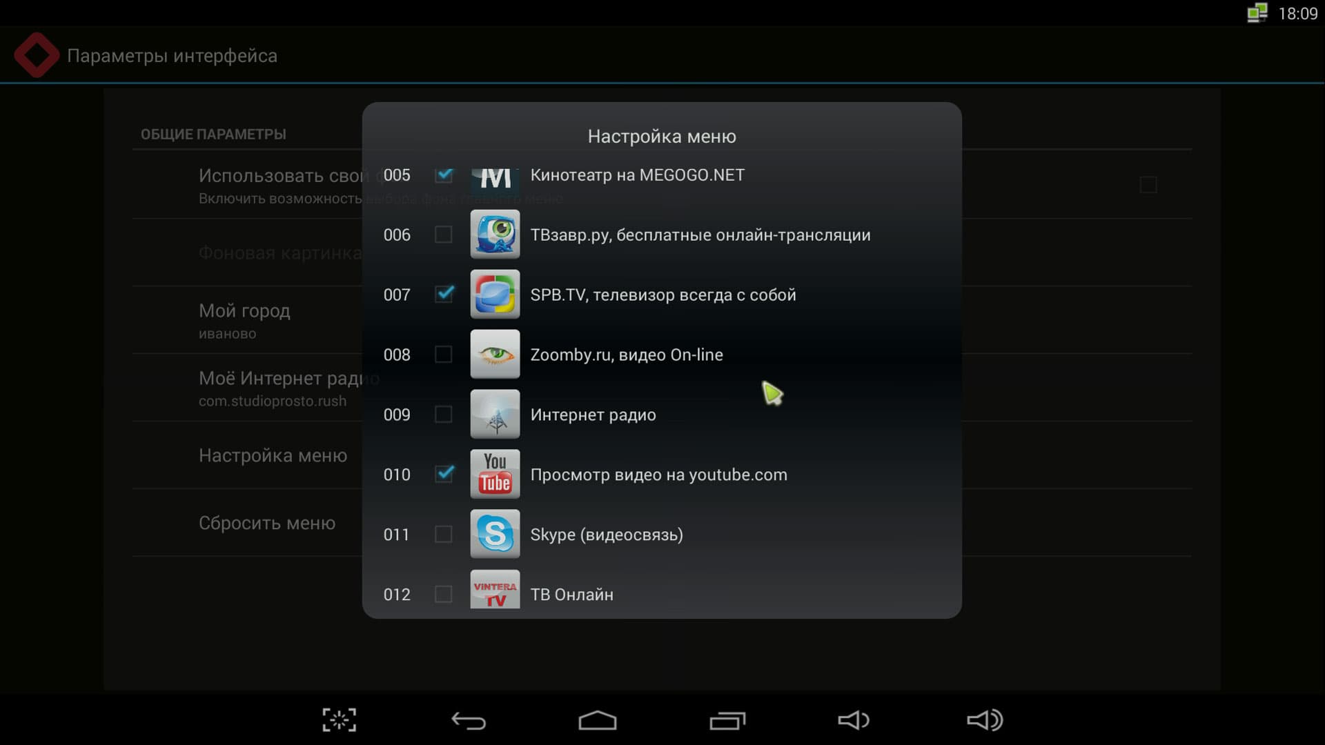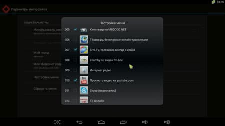 Гораздо комфортней управлять плеером с помощью пульта ДУ оказывается во второй оболочке, которая имитирует меню стандартной медиаприставки. Состав пунктов, присутствующих на главном экране TV Launcher, регулируется в параметрах интерфейса.