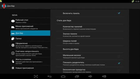 Nova имеет довольно богатые настройки, позволяющие кардинально изменить оформление интерфейса и состав отображаемых на экране объектов.