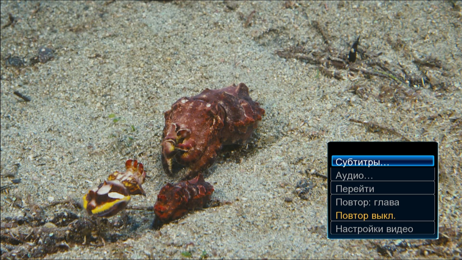 Похоже, всё идёт к тому, что необходимость в проверке поддержки всяческих Blu-ray-меню скоро отпадёт, плееры потихоньку осваивают бывшие недостижимыми высоты. Так, рассматриваемый аппарат без особых забот отображает это пресловутое меню, независимо от способа, которым записан диск: образ ли это или просто скопированные с диска папки (в случае с папками для запуска диска требуется установить курсор на папку и нажать клавишу Play).