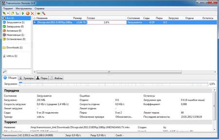 Проблема решается установкой на ПК специальной оболочки Transmission Remote GUI, теперь управление закачками можно производить непосредственно в ней, почти не отличающейся от привычного торрент-клиента вроде uTorrent. Но, в отличие от ПК-шной версии клиента, здесь все задачи и файлы будут храниться не на ПК, а на жёстком диске плеера, с компьютера же производится лишь управление ими.
