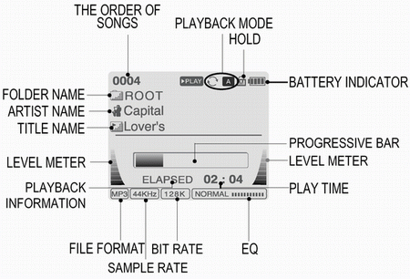 У пользователя есть возможность регулировать некоторые параметры записи. При записи в формате MP3 можно регулировать битрейт в промежутке битрейт 40 кбит/с 320 кбит/с, частота дискретизации при этом остается постоянной 44,1 кГц. В том случае, если запись ведется в формате WAV, то по умолчанию используется следующий формат Bitrate 1411 кбит/с (44,1 кГц, 16 бит стерео). При необходимости у вас есть возможность прослушать записанные файлы непосредственно на плеере. Файлы с записями диктофона хранятся в собственной директории RECORD/Voice и имеют имена VOICE***.MP3/WAV.