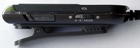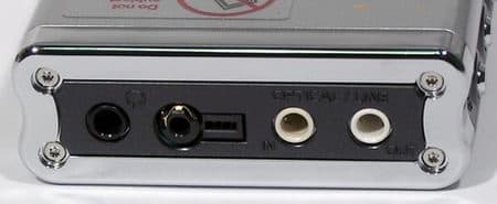 На верхней боковой поверхности расположены исключительно разьемы для ввода-вывода аудио. На фото можно увидеть комбинированный разьем для подключения пульта ДУ или наушников (в зависимости от желания пользователя). Также там находятся два комбинированных оптически/аналоговых разьема Line-In и Line-Out. Таким образом, если вы возьмете устройство с собой в дорогу, вы в любом месте легко сможете устроить как персональную дискотеку, так и персональную звукозаписывающую студию, тем более что встроенный кодер легко позволяет на лету кодировать записываемый звук в формат MP3. Необходимо отметить один большой недостаток комплектации устройства отсутствие оптического кабеля, так как необходимый кабель довольно сложно найти в магазинах.