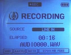 Параметры записи при использовании Line-In регулируются точно так же, как и в случае с диктофоном с теми же данными. Файлы с записями хранятся в директории RECORDAUDIO и имеют имена AUDIO***.MP3/WAV.